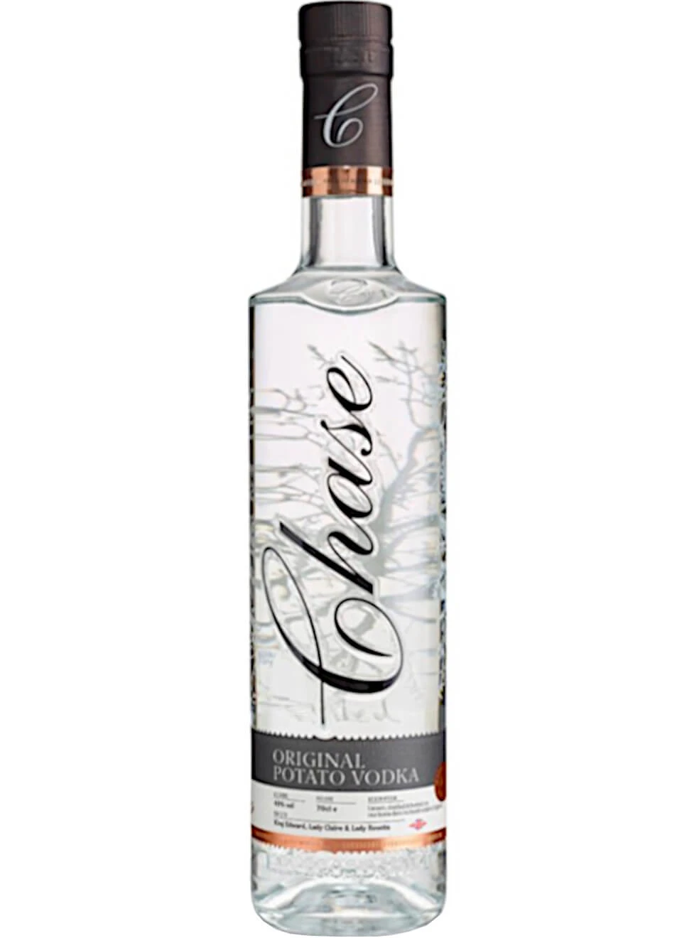 Chase Potato Vodka ist ein hochfeiner englischer Vodka aus der berühmten Chase Distillery in Hereford, etwa 80 km südwestlich von Birmingham in der britischen Grafschaft Herefordshire gelegen. Diese von Obstbau und Landwirtschaft geprägte Gegend ist die Heimat der Rosemaund Farm, wo in unmittelbarer Nachbarschaft zur Brennerei die Kartoffeln wachsen, die den Grundstoff für den Chase Wodka liefern. Die Abfüllung erfolgt mit 40% Alkoholgehalt in elegante, eigens für die Destillerie entworfene, nummerierte Flaschen, die durch ein minimalistisches Design und den eleganten Chase-Aufdruck einen hohen Wiedererkennungswert besitzen.