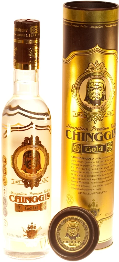Chinggis Gold in der Halbliterflasche stammt, wie der Mongol Vodka, aus der Produktion der Alko Group, ansässig in der Hauptstadt der Mongolei, Ulan Bator. Benannt wurde dieser Premium-Vodka nach dem sicherlich berühmtesten Mongolen, der jemals lebte: Chingis Khan. Dieser quasi königliche Anspruch wird auch im Chingis Gold deutlich, der, zusammen mit den anderen Premium-Vodkas aus demselben Hause, ausschließlich bei Staatsbanketts und sonstigen wichtigen Staatsempfängen serviert wird.