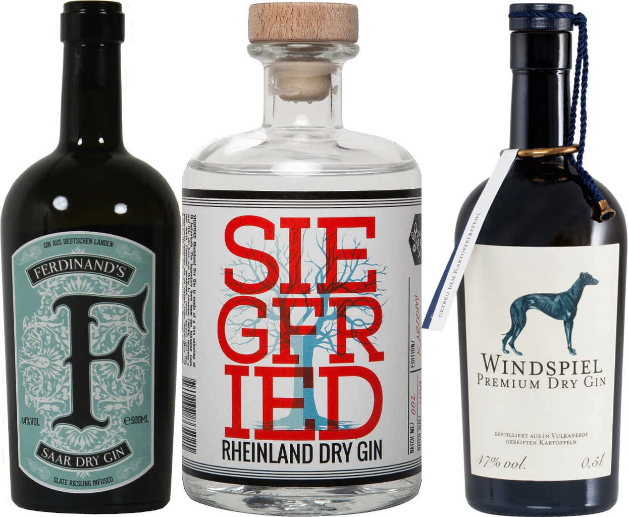 Set aus verschiedenen Gins mit ins. 1,5l und mit bis zu 47% Vol. Alc.