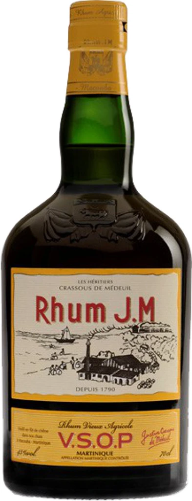 Dieser edle Rum stammt aus einer der fruchtbarsten Regionen der Insel in den Kleinen Antillen. Die Destillerie JM Rhum wurde 1790 gegründet und trägt die Initialen J.M., die an den Gründer Jean Marie Martin erinnern, der nicht nur Rumproduzent, sondern auch Dorfpfarrer zu jener Zeit war. Im Jahr 1914 wurde die Destillerie von Gustave Crassous de Médeuil übernommen, dessen Nachfahren das Unternehmen bis 2004 führten. Seitdem ist die Brennerei Eigentum der Bernard Hayot Group. J.M. Rhum ist einer der kleinsten Rumdestillerien Martiniques, besitzt jedoch einen hervorragenden Ruf und kann zahlreiche Auszeichnungen wie die Bronze-Medaille Rhum Fair Paris 2013 oder die Silbermedaille auf der Wine and Spirits Competition San Francisco aus dem Jahr 2012 vorweisen.