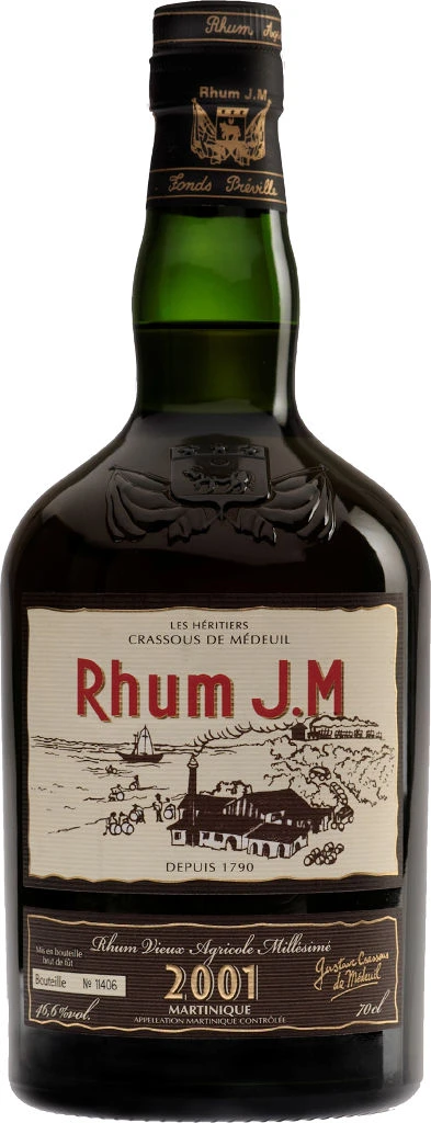 Beim J.M. Rum Vintage 2001 handelt es sich um einen Jahrgangs Rum, der zehn Jahre in kleinen Eichenfässern gereift ist. Die Fässer werden vor ihrem Gebrauch mit hochprozentigem Rum ausgestrichen, der schließlich angezündet wird. Das verleiht dem Rum später ein leicht rauchiges Aroma.