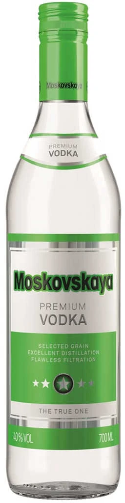 Moskovskaya Russischer Wodka ist eine echte Traditionsmarke: die Marke, deren Name nichts anderes bedeutet als „aus Moskau stammend“, wurde bereits 1894 noch während des Zarenreiches kreiert und galt damals als erfolgreichste Vodka-Marke des zaristischen Staatsmonopols. Nach dem Fall des Zarenreiches und der Einführung der Prohibition in der Sowjetunion während des I. Weltkrieges wurde die Produktion zunächst eingestellt, aber schon 1925 wieder aufgenommen. Lange Jahrzehnte war Moskovskaya die führende Exportmarke der staatlichen sowjetischen Simex – und auch den Zerfall der Sowjetunion überlebte die Marke unbeschadet, denn heute gehört sie neben Stolichnaya zu den bekanntesten Marken der privaten Soyuzplodimport mit Sitz in – Moskau, wo den sonst? So wird dieser berühmte Vodka mit dem schon seit Jahrzehnten grünen Etikett auch heute noch in Moskau destilliert, die Abfüllung erfolgt hingegen im lettischen Riga.
