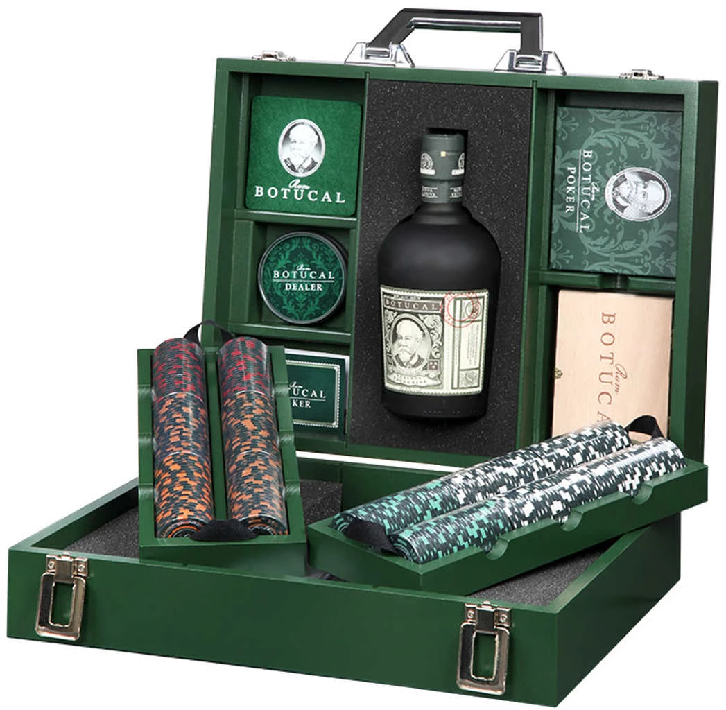 Pokerkoffer mit Rum von Botucal in 0,7l Flasche mit 40 %Vol. Alc. mit Farbstoff