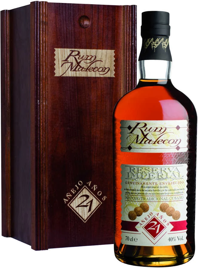 Rum von Malecon in der 0,7l Flasche in Holz-Geschenkbox mit 40% Vol. Alc. mit Farbstoff