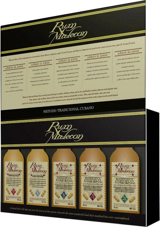 Die Marke Malecon wurde von Exilkubanern nach ihrer Flucht aus dem von der Castro-Revolution geschüttelten Kuba in Panama gegründet. Doch nicht nur der Name Malecon- er erinnert an die Uferpromenade von Havanna- sondern auch die traditionellen Fertigungsmethoden und die Qualität der Malecon-Rums zeugen von einer langen Geschichte und Erfahrung in der Rum-Destillation auf Kuba. Grundlage für jeden Ron Malecon ist Melasse aus den Zuckerfabriken Panamas, die nach traditionellen Methoden vergoren und in einer Column Still-Anlage schonend gebrannt wird. Die Lagerung aller Rums erfolgt in Ex-Bourbon-Fässern, die hierzu in eigenen Felshöhlen in den Bergen Panamas lagern. Das dort vorherrschende kühlere Klima sorgt für eine langsamere und gleichmäßigere Alterung der Destillate, was zu einem ausgewogeneren und ansprechenderen, weicheren Ergebnis führt.