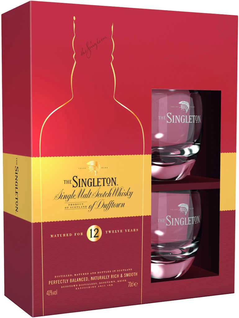 Im Geschenkset Singleton 12 Jahre mit 2 Gläsern treffen sich guter Geschmack und formvollendete Präsentation! Liebhaber eines typischen Single Malt Whiskys aus der berühmten Speyside-Region im Nordosten Schottlands wissen The Singleton als typischen Vertreter der mit blumigen und fruchtigen Elementen ausgestatteten Speyside-Whiskys zu schätzen. Für Sie ist dieses Geschenkset gedacht, das neben einer Flasche dieses Whiskys noch zwei sehr edel geformte Gläser enthält, damit dem unmittelbaren Genuss am Weihnachtsbaum nichts mehr im Wege steht!