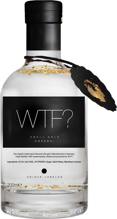 Rechtzeitig für vorweihnachtliche, weihnachtliche und Silvester Partys der besonderen Art it der Vodka jetzt bei uns zu kaufen. Denn dieser Wodka aus der 0,2 Liter Flasche hat tatsächlich Stil. Die typische WTF? Flasche mit individuellem, von Hand aufgetragenem Blattgold Dekor am Etikett macht neugierig. Jede einzelne Flasche ist ein Unikat und bleibt auch leer ein wertvolles Stück. Der Premium Wodka im Inneren einer vollen Originalflasche lockt mit schwebenden Goldflocken und animiert funkelnd zum Probieren. Auf der Zunge schmeichelt fruchtiges Aroma von Brombeerextrakt mit purem Gold und Wodka um die Wette. Da trinken die Leute nicht einfach Wodka. Nein, sie zelebrieren den Genuss von WTF? Vodka Gold in fröhlicher Runde. Dieser dreifach destillierte Spitzen Wodka mit 37,5 Prozent Alkoholgehalt verbindet alle in der Erkenntnis des Hochgenusses. Und für die Damen der Party lassen sich mit dem WTF? Vodka Gold betörende klare Cocktails mixen, bei denen das geheimnisvolle Goldgestöber erst so richtig zur Geltung kommt.