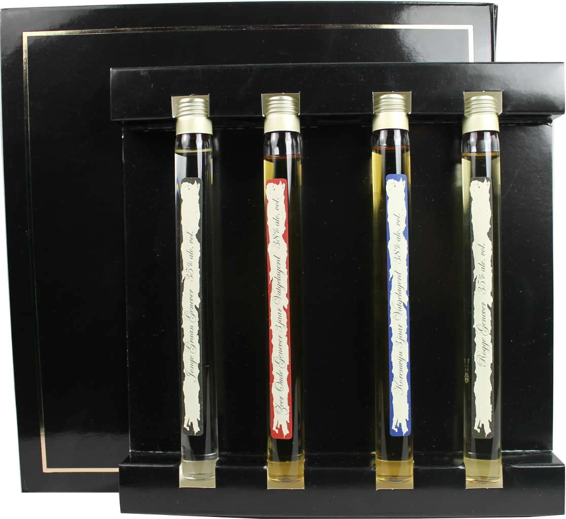 In diesem Set sind vier verschiedene Genever der renommierten holländischen Traditions-Destillerie Zuidam enthalten, die schon seit vielen Jahren für ihre hervorragenden Genever bekannt und geschätzt ist. Dem Kenner bietet dieses Set die einzigartige Möglichkeit, die Höchstleistungen der Destillerie miteinander zu vergleichen, während der Neueinsteiger vier ausgezeichnete Genevers erhält, die ihm einen unvergesslichen Einstieg in die Welt der Wacholderdestillate gewähren. Die Zuidam Destillerie ist schon seit vielen Jahren ausschließlich Hersteller von Qualitätsspirituosen und stellt in mühsamer Handarbeit seine hervorragenden Genever her. Aus diesem Grund ist dieses Geschenkset die perfekte Möglichkeit, einem echten Gin- und Geneverkenner seine Wertschätzung zu zeigen.